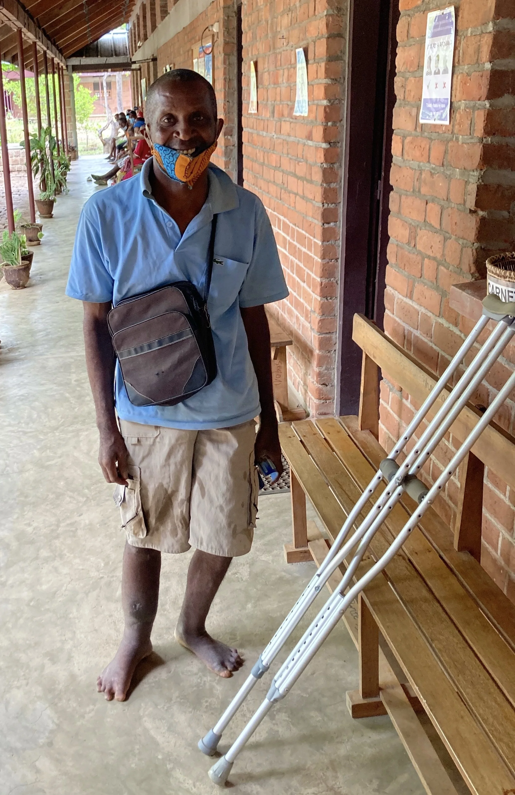 A man who was severely crippled from a broken tibia for 1 year, shows how he can walk without crutches several weeks after undergoing a new operative procedure available at the Good News Hospital