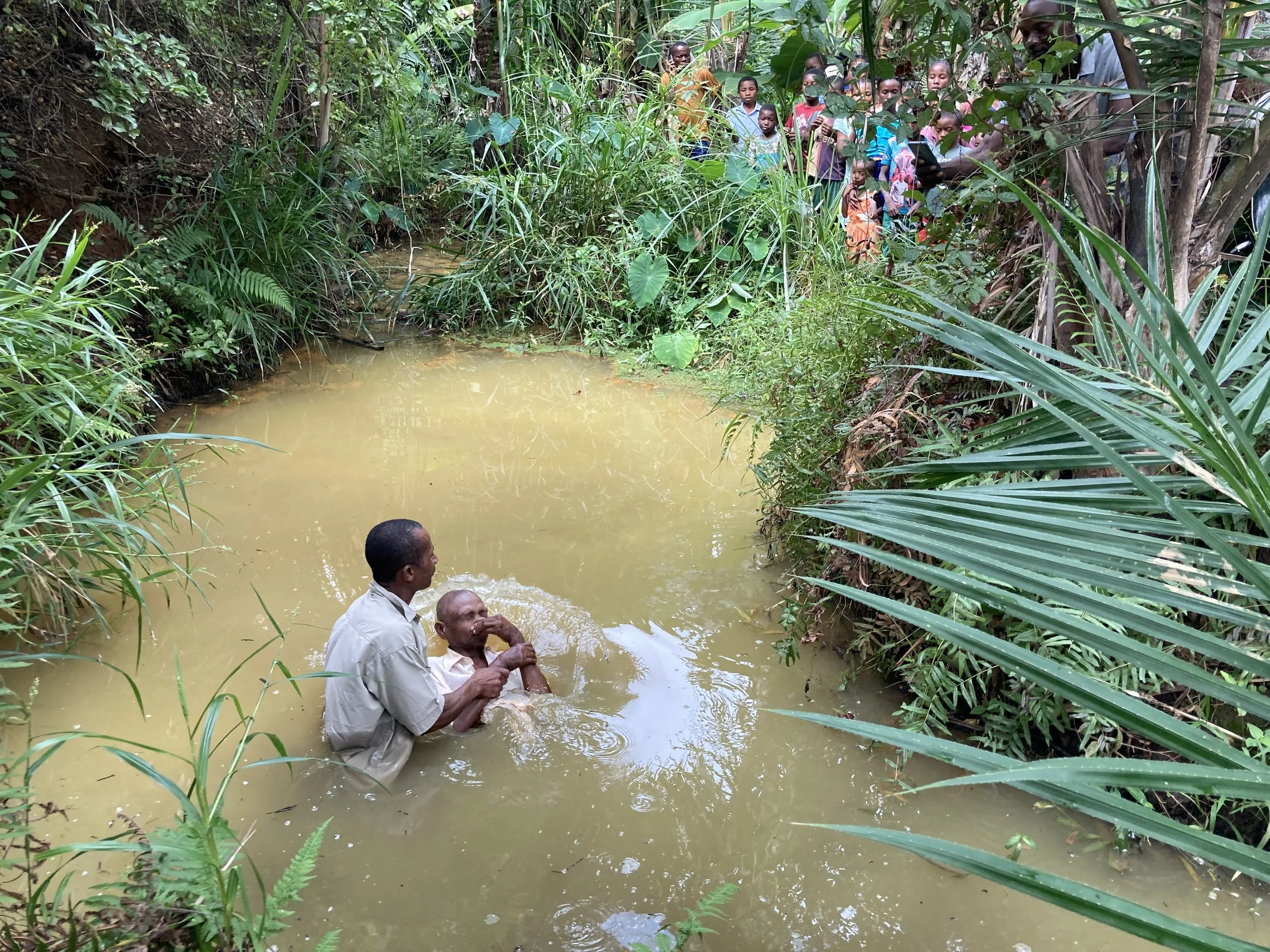 People elbowed themselves forward, climbed trees and jumped to the other bank to get a good view. Seventeen people were baptised, of all ages, all gladly testifying to their belief in the Christ who died for them and was raised again.